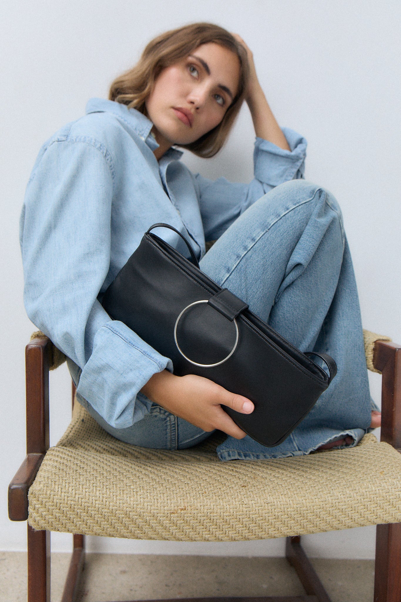 Crafted entirely from high-quality lamb leather, this new model evolves into a more sophisticated version of the disco bag, featuring a slimmer ring and an elongated silhouette. Its clean, minimalist design balances softness with structure in a refined way. The perfect ally for both day-to-day wear and evening occasions. Handmade in Spain.