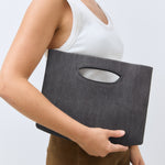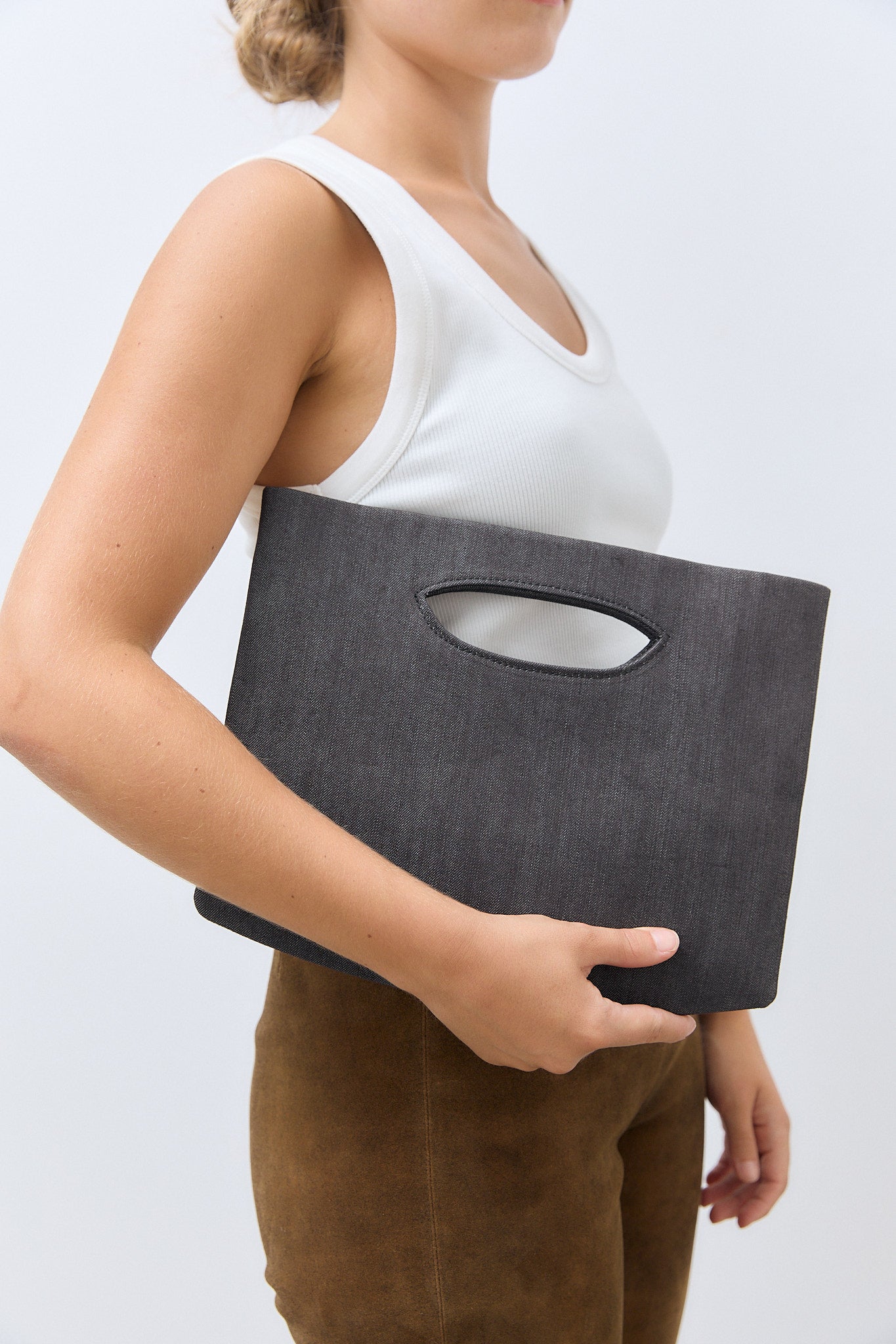Crafted entirely from premium denim, this refined mini bag features a sleek, envelope silhouette designed for evening and special occasions. Its clean lines and structured form offer a sophisticated balance of texture and shape, providing enough space for essentials. A versatile piece that effortlessly complements both day and night looks. Handmade in Spain.