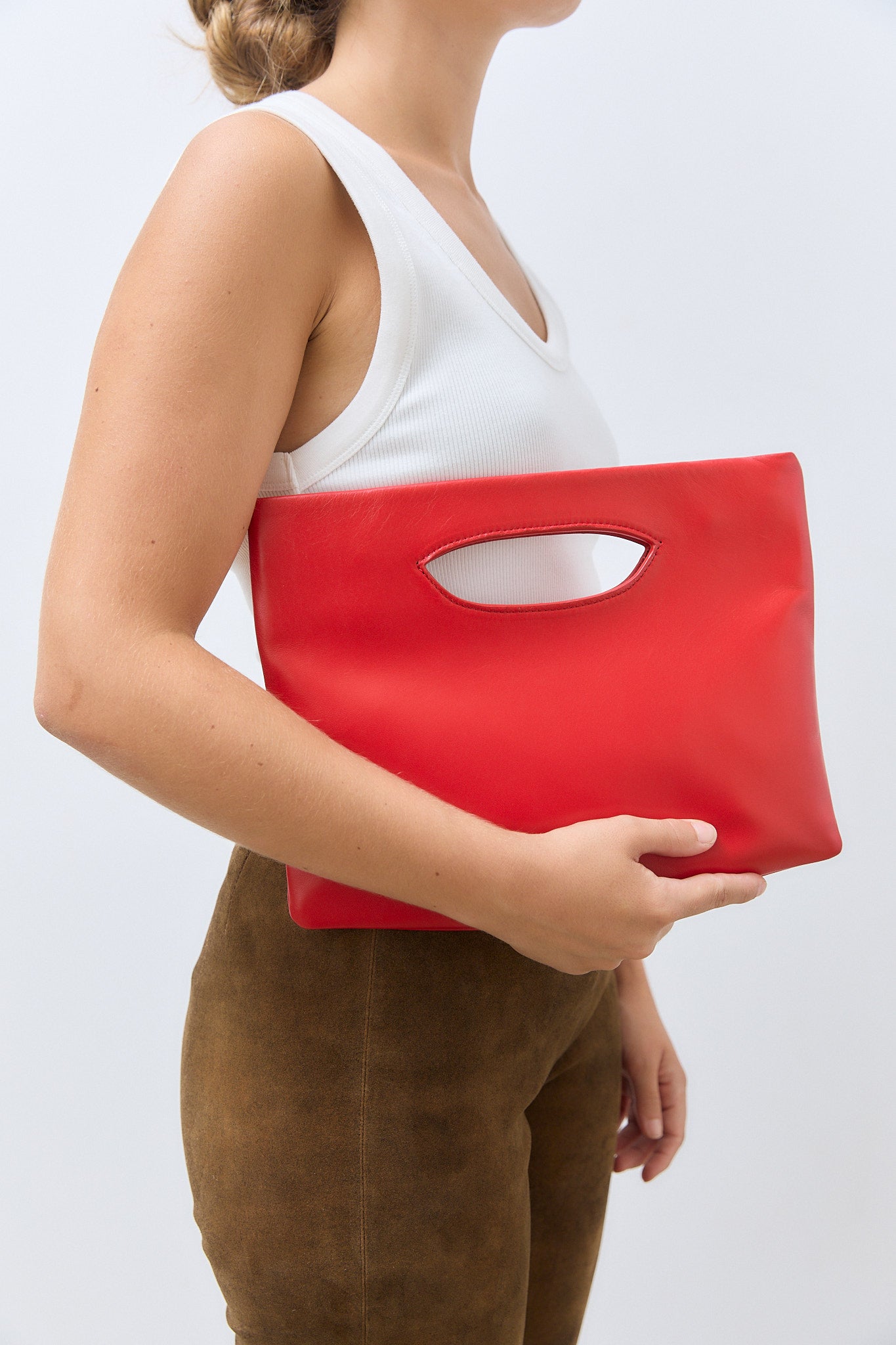 Crafted entirely from high-quality calfskin leather, this refined mini bag features a sleek, envelope silhouette designed for evening and special occasions. Its clean lines and structured form offer a sophisticated balance of softness and shape, providing enough space for essentials. A versatile piece that effortlessly complements both day and night looks. Handmade in Spain.